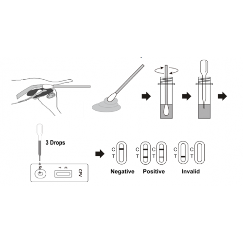 | مجموعة من ١٠ اختبارات - ظروف التخزين: ٢-٣٠ درجة مئوية، يُمنع تجميدها. لا تُخزن في ضوء الشمس المباشر. - مكونات العبوة: • أشرطة اختبار • قطارات • مسحات • أنابيب بلاستيكية مع محلول منظم • نشرة داخلية للعبوة |
